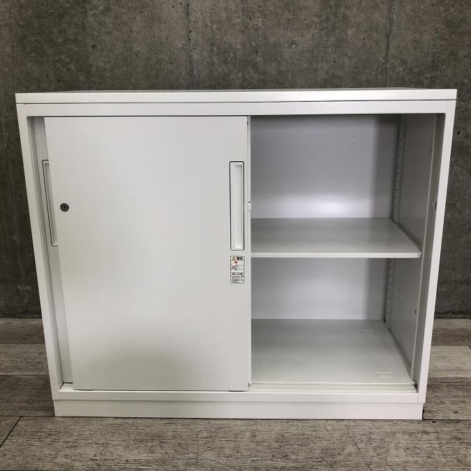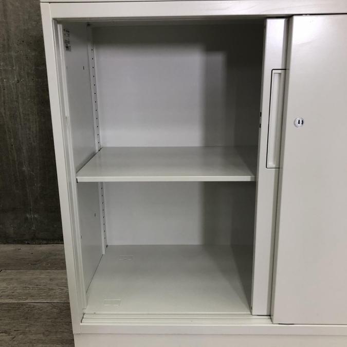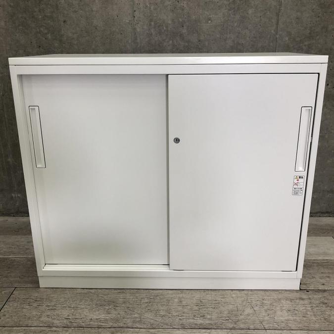 【在庫入替セール】【4台入荷】【書類の収納スペースを増やしたい方に!通路脇にも設置可能な引き戸扉の書庫!】■コクヨ(KOKUYO) エディア 引き違い書庫 2枚引き戸タイプ ローキャビネット ■ホワイト ■シリンダー錠【T1】