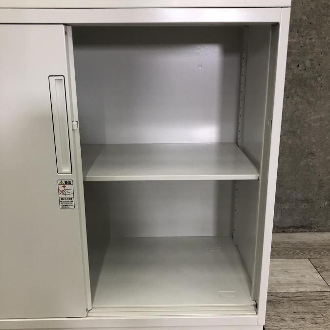 【手狭なオフィスで大活躍!導線を確保できる引き違い戸のキャビネット!】■コクヨ(KOKUYO)製 エディア(EDIA)シリーズ 引き違い書庫 2枚扉 ローキャビネット ■天板/ベース付き ■シリンダー錠 ■ホワイト オフィスバスターズ 水戸サテライト 日立市、常陸太田市、高萩市、北茨城市、常陸大宮市、大子町 ひたちなか市