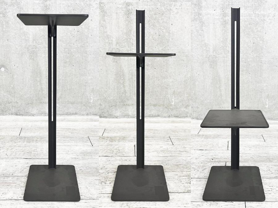 アルミとスチールで作られた高さ調整可能なテーブルです。