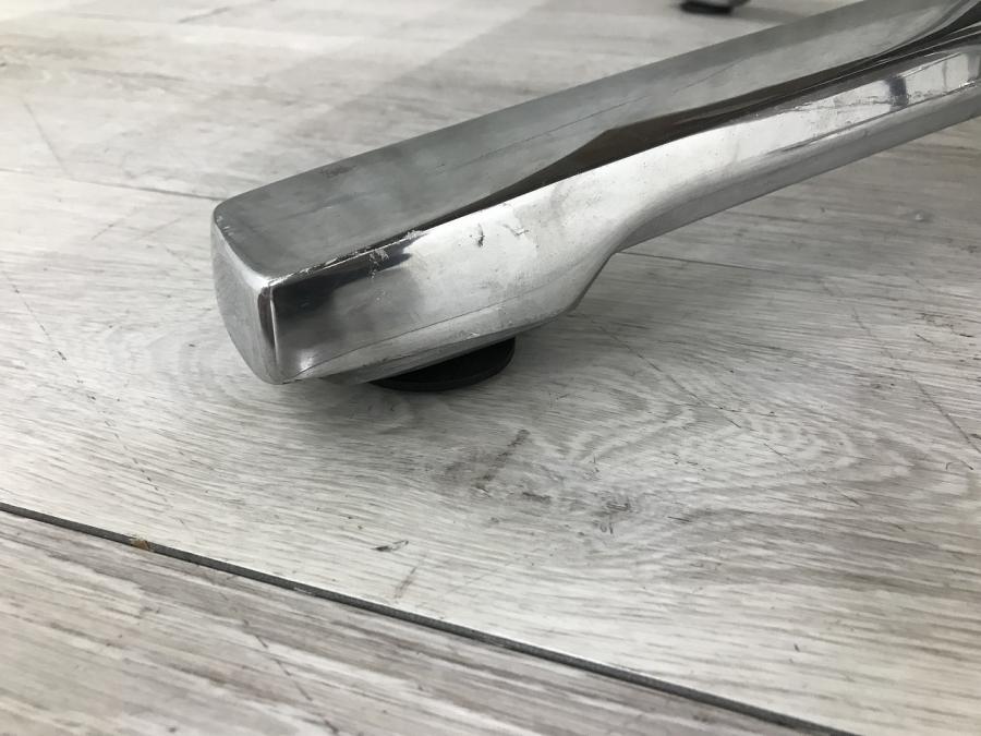 - 多数不具合あり天板歪み、アジャスター無し、キャスター使用不可ようなそのテーブルの本来の効用を果たすための機能以外の多数が使用不可な状態。(例、キャスターロッ ク機能使用不可、棚板無し等がある。)