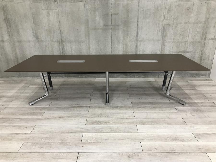 【会議・ミーティングの定番!】■ITOKI(イトーキ) DFシリーズ ■配線孔あり ■幅3200㎜×奥行1200㎜ ■木目ダーク 【6~8名様の打ち合わせに最適!フリーアドレスにもオススメです!】- 足立・葛飾店