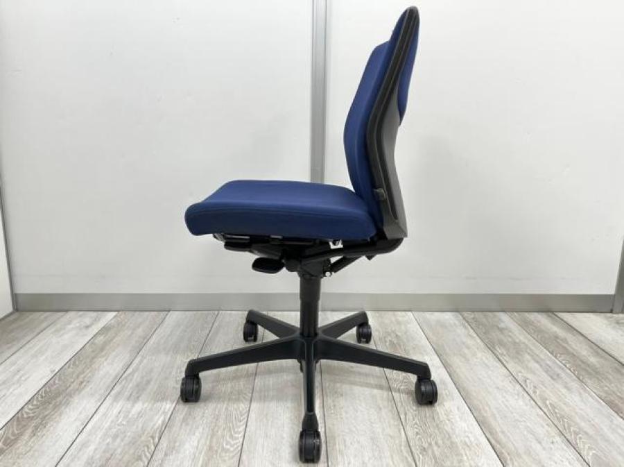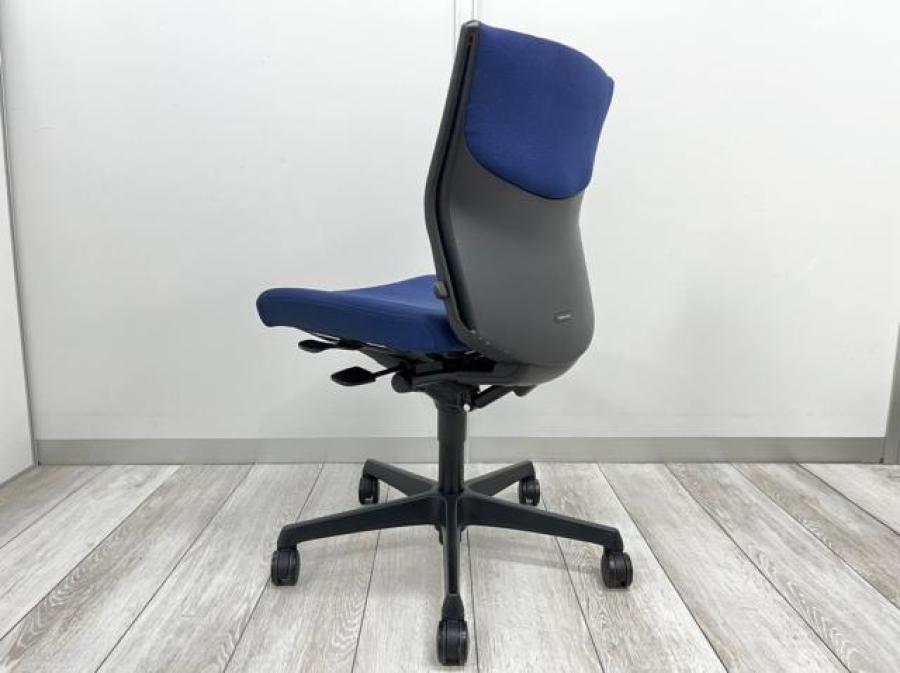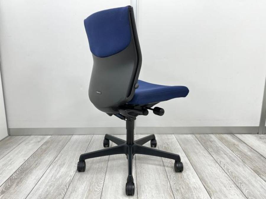 【長時間のデスクワークもランバーが快適にサポート!】■okamura(オカムラ)製 エスクードチェア ローバック 色:ダークブルー 肘無し