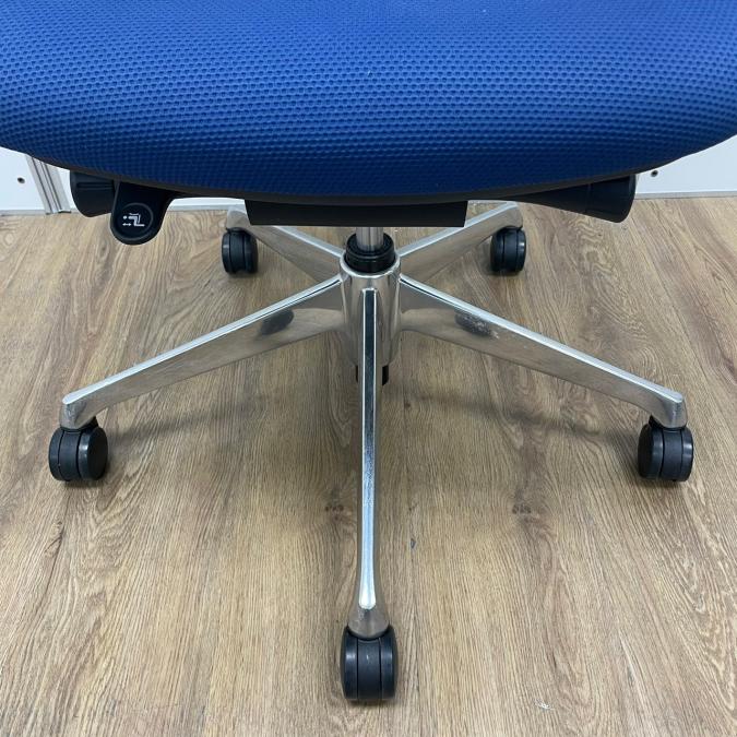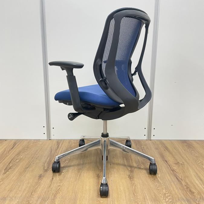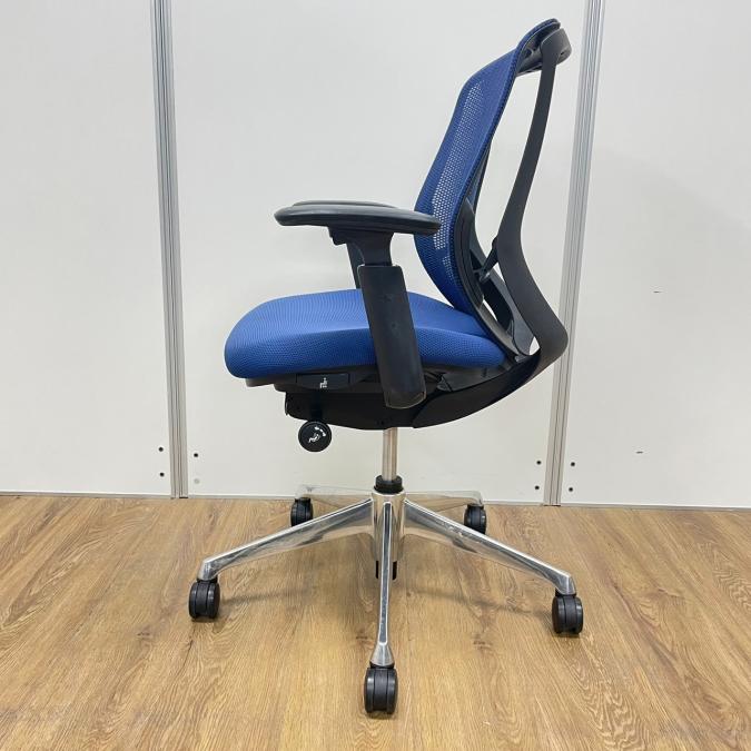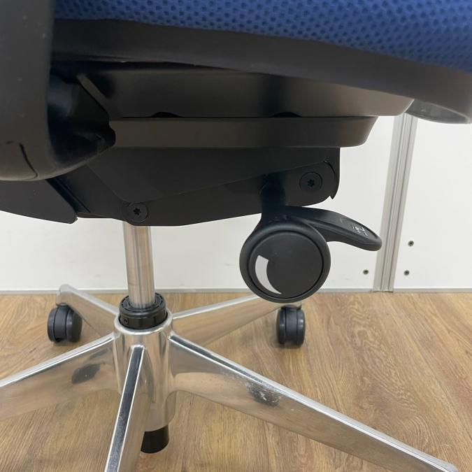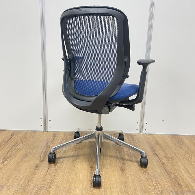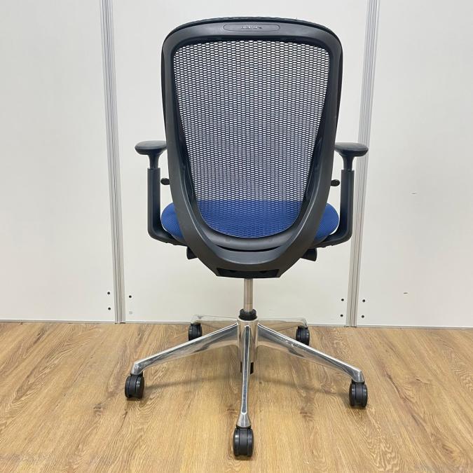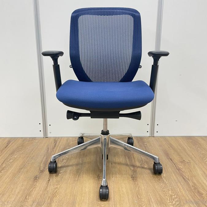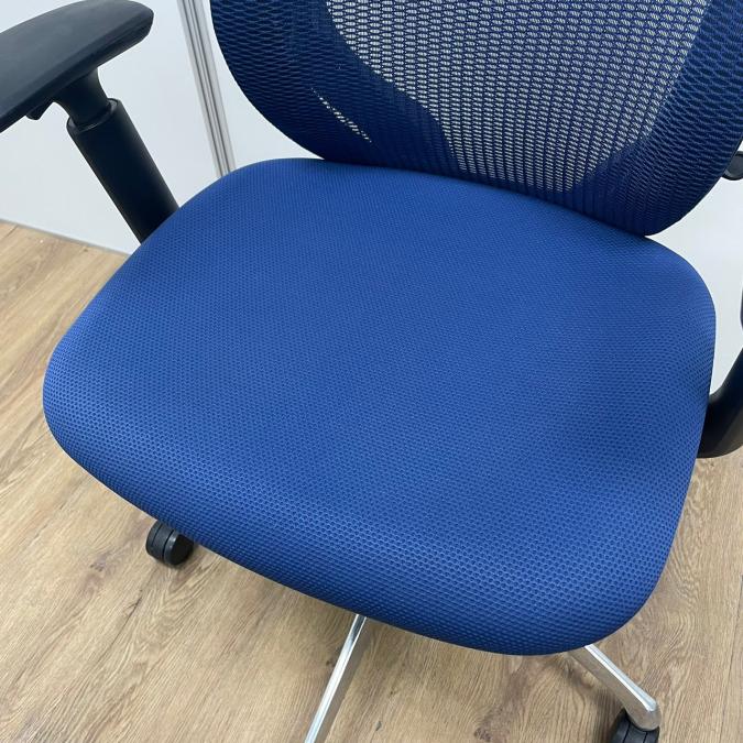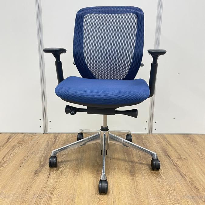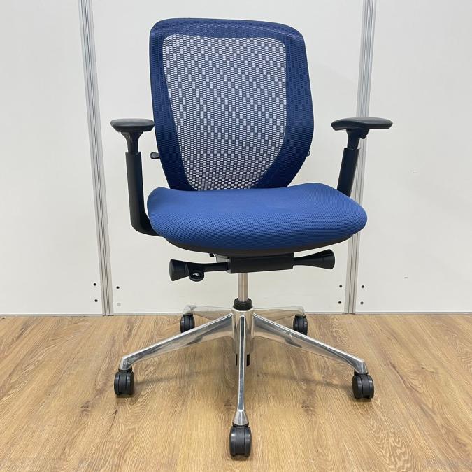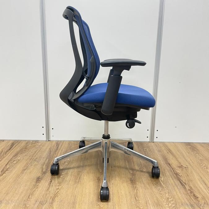 オカムラ製 シルフィーシリーズ ネイビーブルー 可動肘 ポリッシュ脚 肘付きローバックチェア!!- 京都東寺店