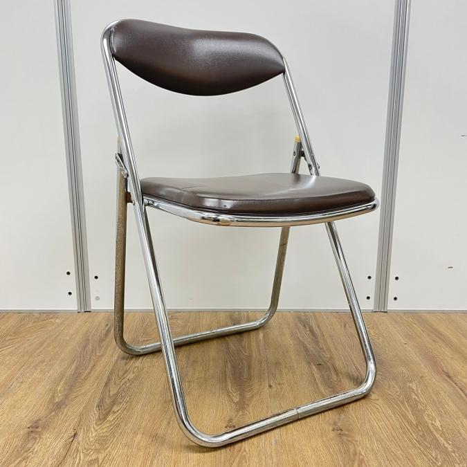 オカムラ製 ブラウン 折りたたみパイプ椅子!!- 京都東寺店
