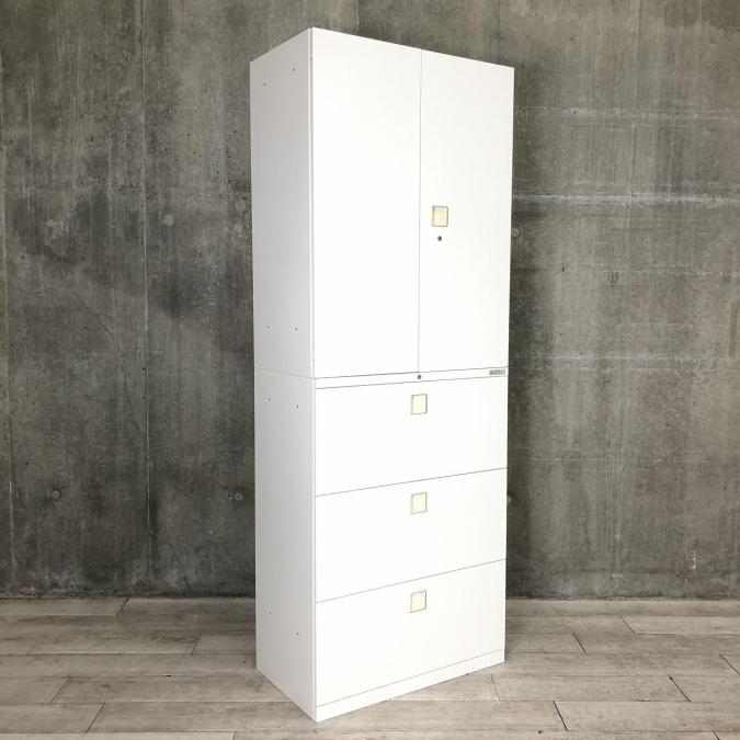 オカムラ レクトライン 3段ラテラル+両開き扉の書庫セット ホワイト シリンダー錠 鍵お付けします 人気商品【愛知・名古屋・豊田・静岡・浜松】
