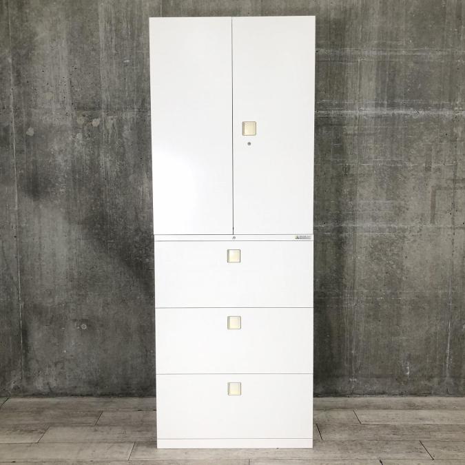 【オフィスの書類をスッキリ整理!大人気レクトラインの上下書庫セット!】■オカムラ(okamura)製 レクトラインシリーズ 両開き+3段ラテラル 書庫セット H2150㎜ ■シリンダー錠 ■ホワイト