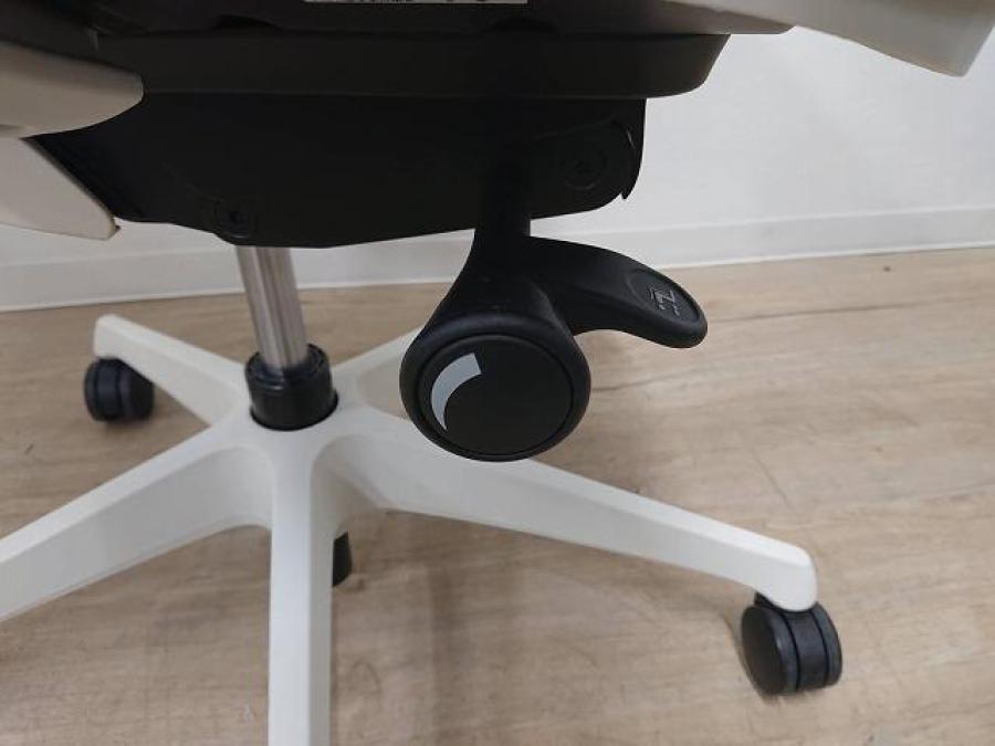 - 座面右下のダイヤル操作で、リクライニングの強弱調整が行えます。これまでのダイヤル式よりも、少ない回転数で、最弱?最強の調整が可能です。