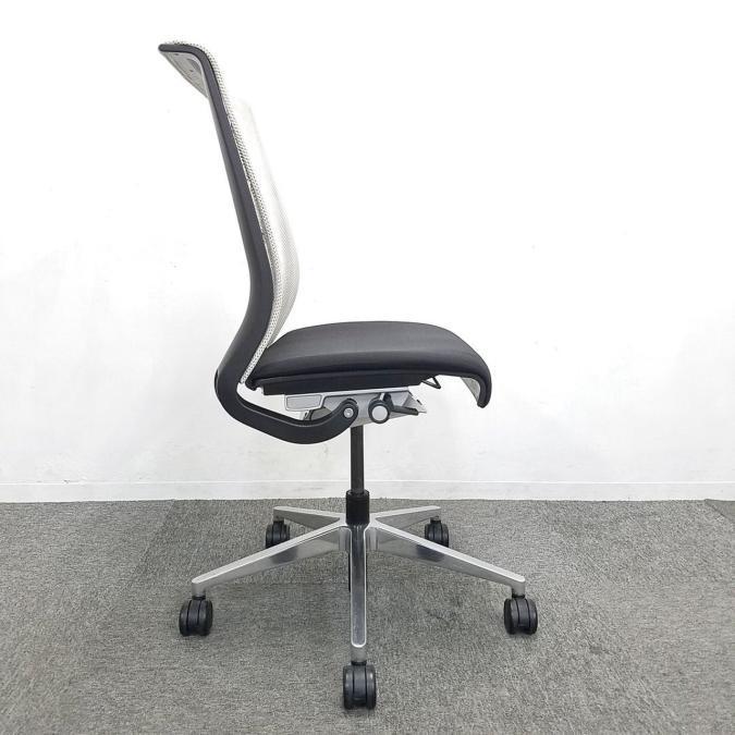 快適な座り心地に不可欠な調節機能である、上下昇降、座面の奥行き調整、リクライニングなどを備えており、操作もわかりやすく好評です。 特に、座面の奥行きは、座面下の左右に通った細いバーで調整でき、座ったままで軽やかに滑るように調整が可能です。 価格面では、新品では高めですが、中古は流通も多く、定価の3割前後の価格で高級チェアの座り心地を手に入れることができます!