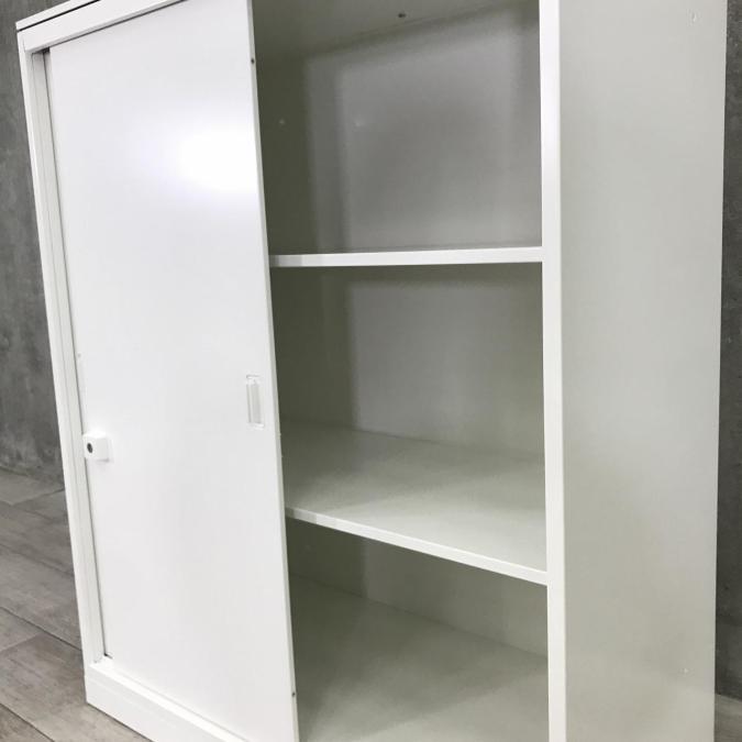 2枚引き戸書庫 オカムラ レクトライン 鍵付き シリンダー錠 ホワイト 天板無し スライド式の扉のため導線を邪魔しません