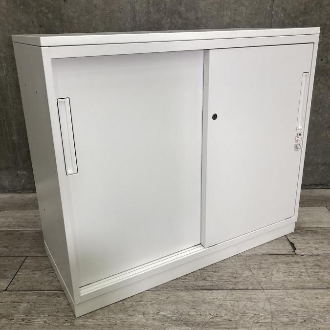 【スライド引き戸だから開閉スペースに困らない!】■コクヨ(KOKUYO)製 エディア(EDIA)シリーズ 2枚引き違い書庫 ローキャビネット シリンダー錠 天板付き ベース付き ホワイト シリンダー錠 収納 中古家具 格安 福岡 オフィス家具 九州最大級《オフィスバスターズ福岡博多店は、福岡を拠点として、日本全国へ中古オフィス用品・オフィス家具を提供しております》