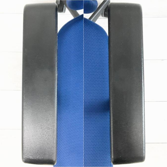 - あり黄ばみ・変色が広い範囲にうっすらある、または濃い黄ばみ・変色が一部ある。(例、座面・背もたれ、脚部等にある。)