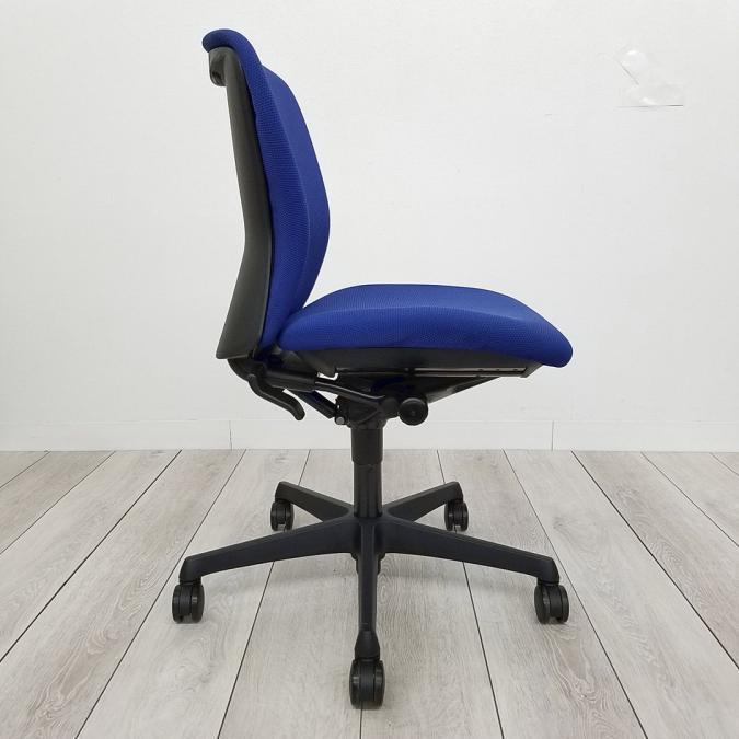 人気オカムラのシーティング スラート ローバックモデル 肘無しチェア ミディアムブルー×ブラック【愛知・名古屋・豊田・静岡・浜松】