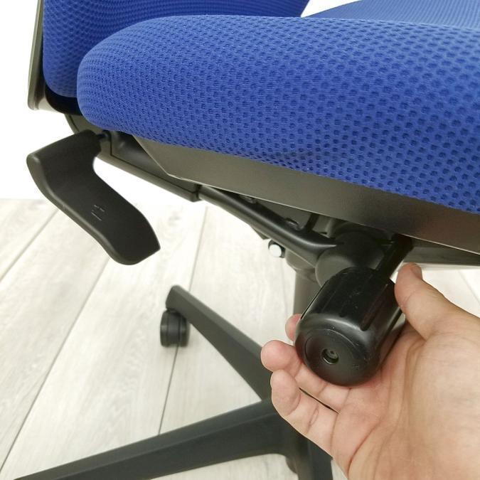 - 角度と反力の強弱が調節可能。さらに、アンクルチルトリクライニング搭載で座面が背もたれと連動してスライドするので快適です。