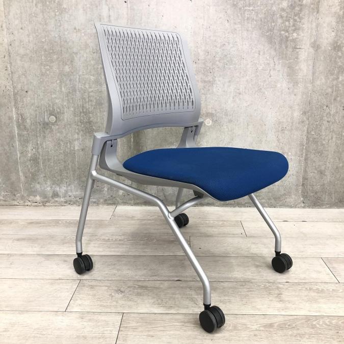 【移動がらくらくなキャスター付き!】 ■コクヨ オルディナ ネスティングチェア ブルー×グレー- 名古屋本店