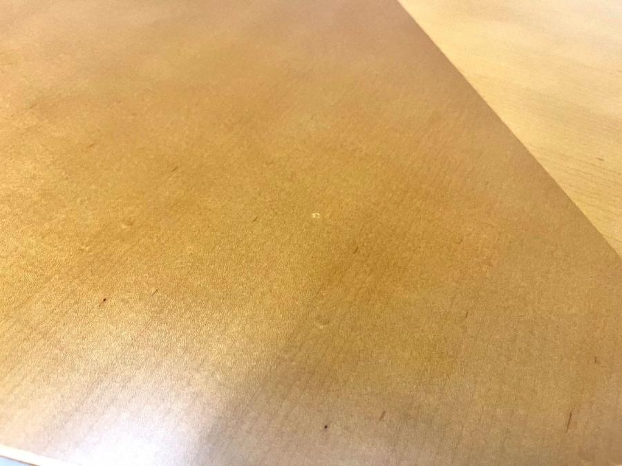 - あり黄ばみ・変色が広い範囲にうっすらある、または濃い黄ばみ・変色が一部ある。(例、天板、幕板、棚板、サイド部分、脚部等にある。)