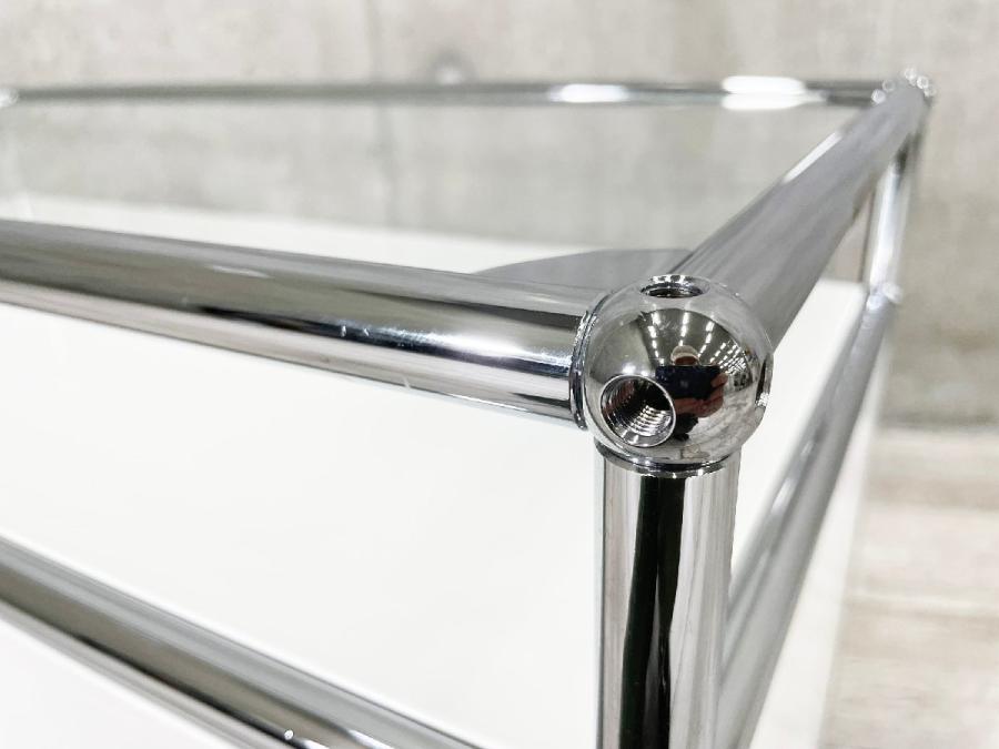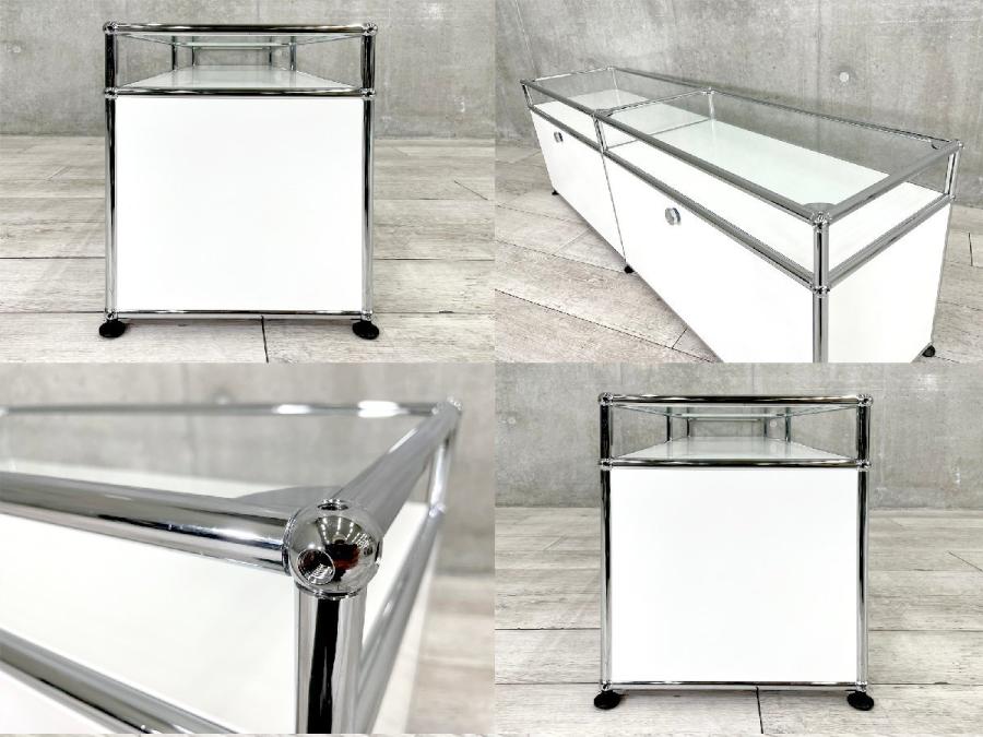USMハラー 1連1段 脚付きキャビネット/ナイトテーブル ピュアホワイト D500 ガラストップ