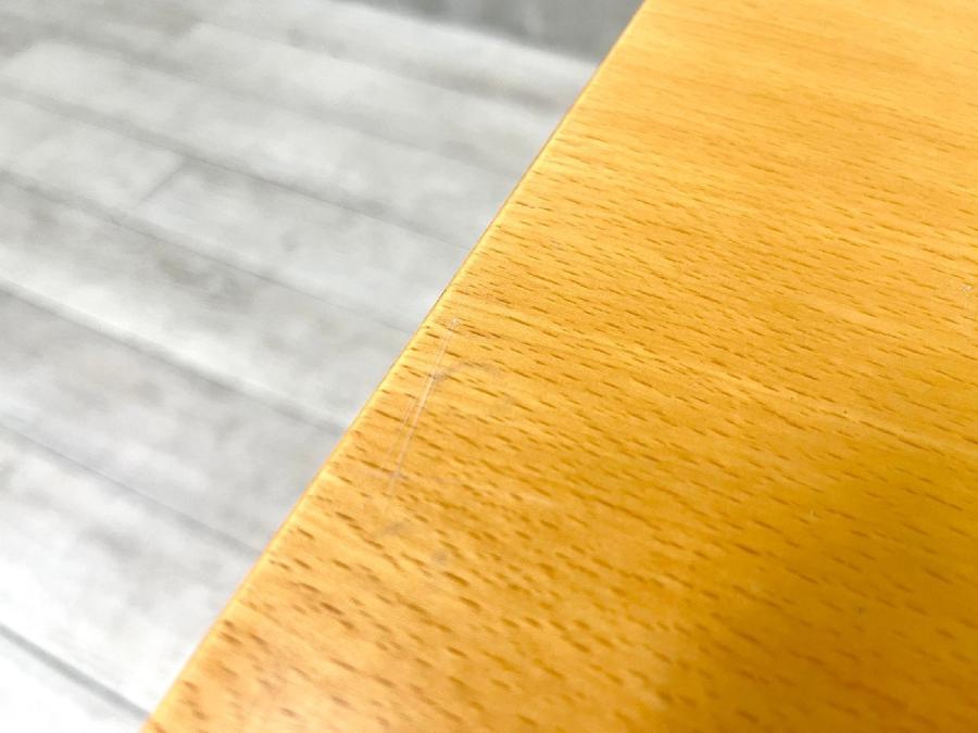 - あり黄ばみ・変色が広い範囲にうっすらある、または濃い黄ばみ・変色が一部ある。(例、天板、幕板、棚板、サイド部分、脚部等にある。)