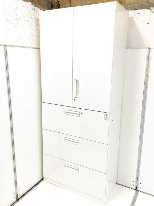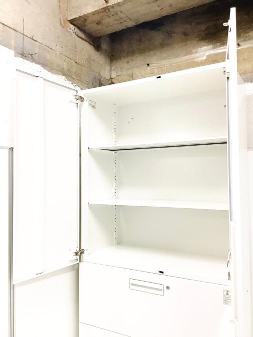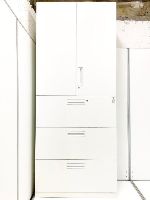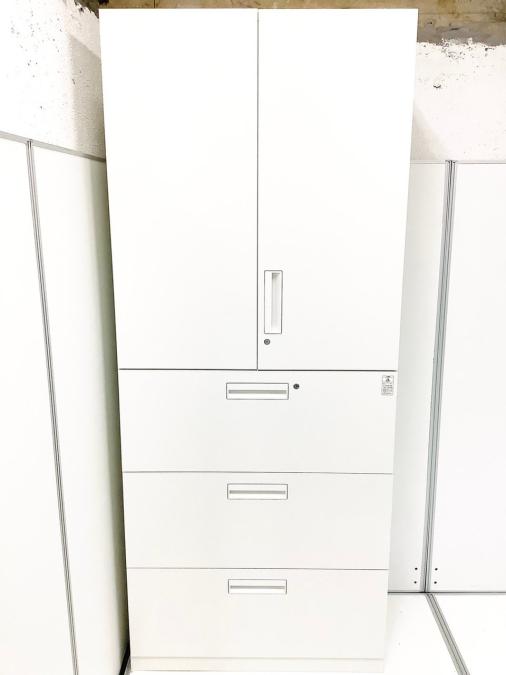 定番シリーズ!収納量抜群!観音開き+引き出しタイプのキャビネットセット!■コクヨ/エディア/ホワイト- 茨城南店