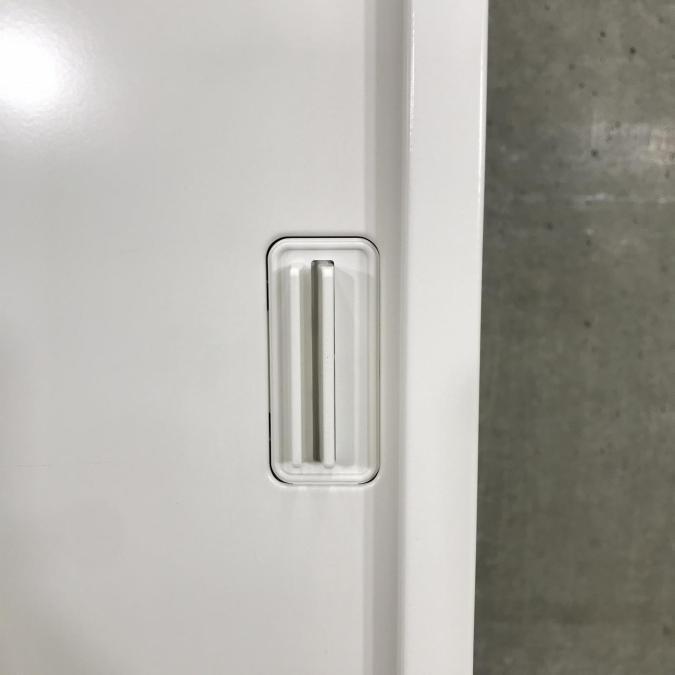 2枚引き戸書庫 オカムラ レクトライン 鍵付き シリンダー錠 ホワイト 天板無し スライド式の扉のため導線を邪魔しません