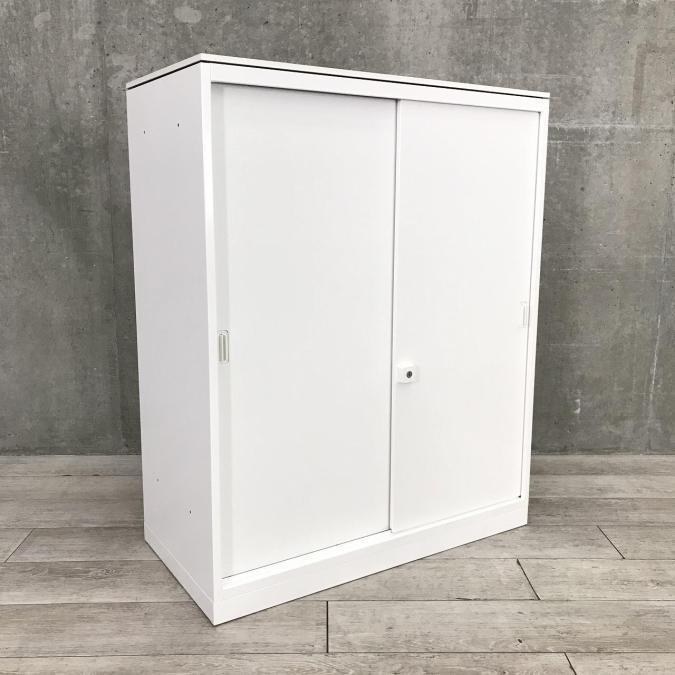 【お問い合わせの多い引違い書庫が入荷!】【スライド引き戸だから開閉スペースに困りません!】■オカムラ(okamura)製 レクトラインシリーズ 2枚扉引違い書庫 ■天板付き シリンダー錠 ■ホワイト【弊社使用欄:A00921666】- 茨城南店