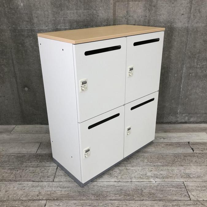 【在庫入替セール(本在庫限定価格)】【フリーアドレスオフィスの必需品!】■プラス(PLUS)製 4人用メールロッカー ナチュラル天板付き ダイヤル錠【LX-5シリーズ】- 川崎店