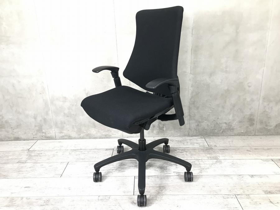 【状態考慮につき特別価格!】【人気の可動肘、ハイバック、ブラックと三拍子揃い!】機能美をデザインに昇華させたハイパフォーマンスチェアです!※背もたれの角度調節レバーが破損しております。それ以外の機能は問題ございません。サーキュラーバリューCO2削減量の算出について