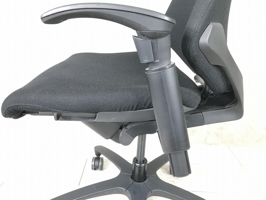 【三次元フォルムが腰にフィット!】希少なエラストマータイプ! ■イトーキ製 エフチェア 肘付 ブラック ハイバック ■姿勢の変化にフレキシブルに対応!
