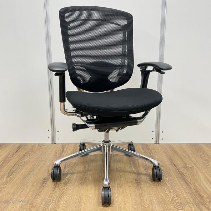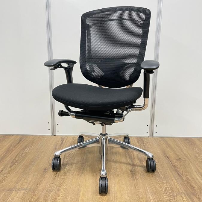 【入替セール】【高級化のあるポリッシュフレーム】オカムラ/コンテッサ/ブラック/スマートオペレーション/可動肘/座面クッション【G2】- 春日部・越谷店
