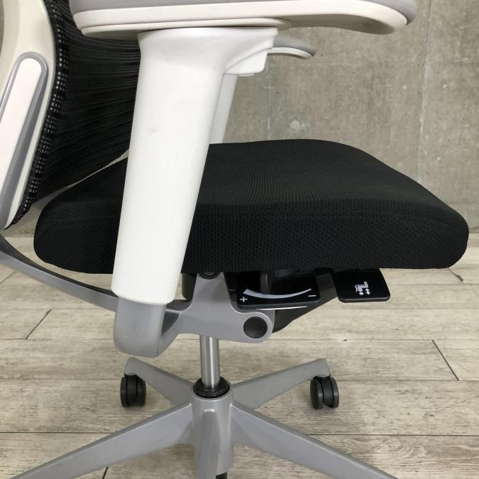 - リクライニングの固定と解除、リクライニング反力の強弱、座面の高さ調整、座面のスライド調整の操作を、すべて座面の裏側に集約。すべての調整を無駄な動きをすることなく、座ったままの状態で行えます。