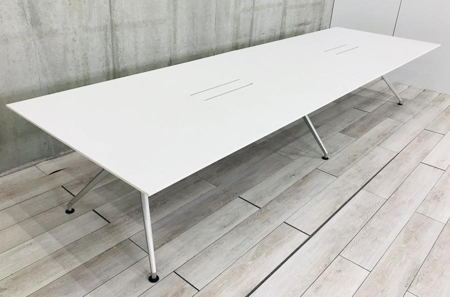 【6~10名の打ち合わせに最適!フリーアドレスとしてもオススメです!】ITOKI(イトーキ) ミーティングテーブル 角テーブル ホワイト W4000 配線孔あり 【2枚分割の天板のため、大型テーブルの中では搬入がしやすい!】- 足立・葛飾店