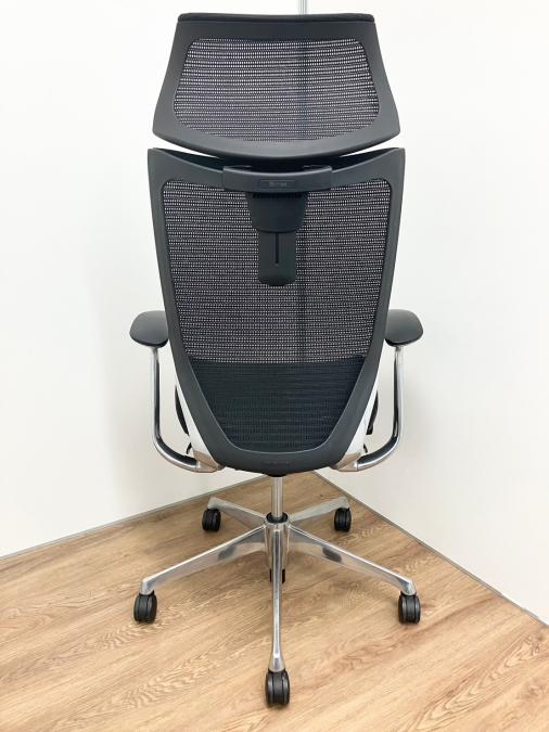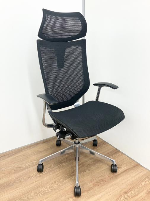 【オフィスの執務室、会議室におすすめ!】■オカムラ(okamura)製 バロン(Baron)チェア 肘付き ハイバック ■背・座面メッシュ ■可動肘 ■ヘッドレスト付き ■ブラック【硬めの座面が大人気!国産メッシュチェアの代表格!】
