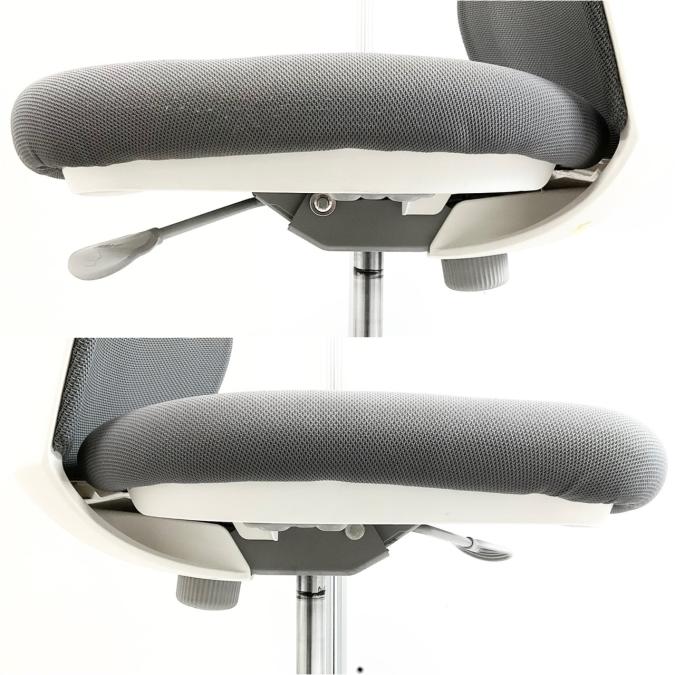 直立姿勢(前傾機能付)から後傾姿勢まで可能な「シンクロリクライニング」