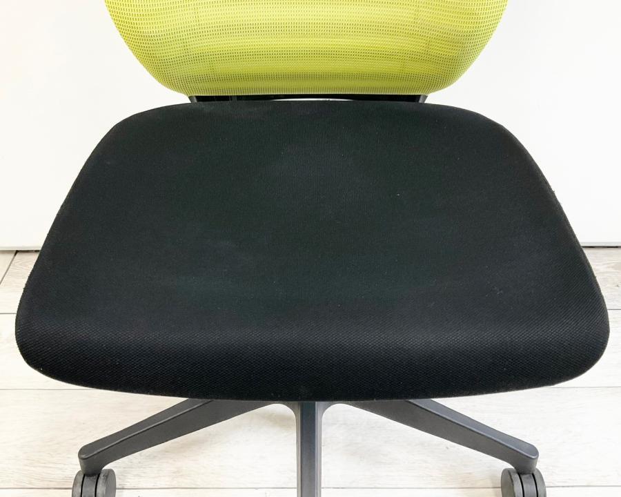 入替セール品につきお値下げ!【カフェ調オフィスにおすすめなグリーンカラーのクッションバックチェア!】イトーキ エピオス 肘無しチェア モスグリーン ブラックフレーム
