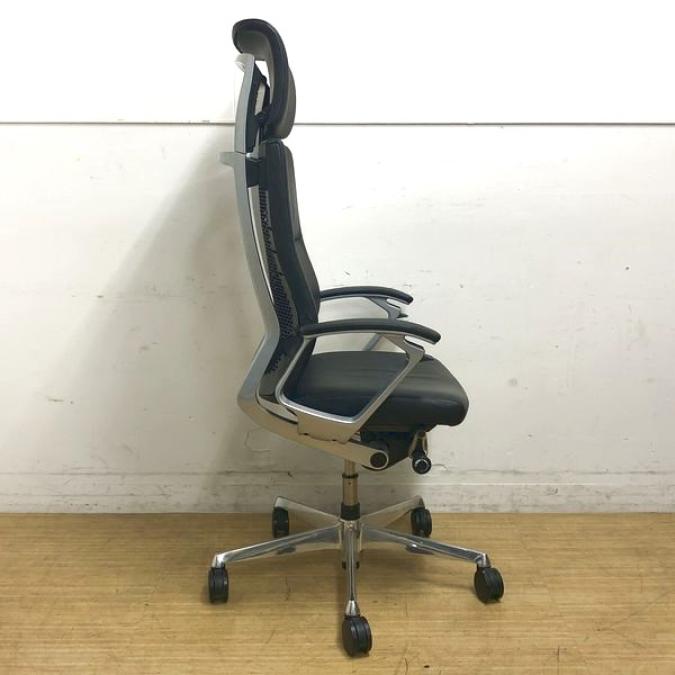 それなりの中古感はあるものの、オカムラ製の革仕様の高級オフィスチェア