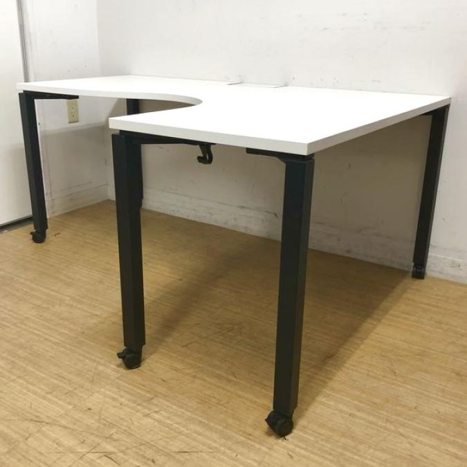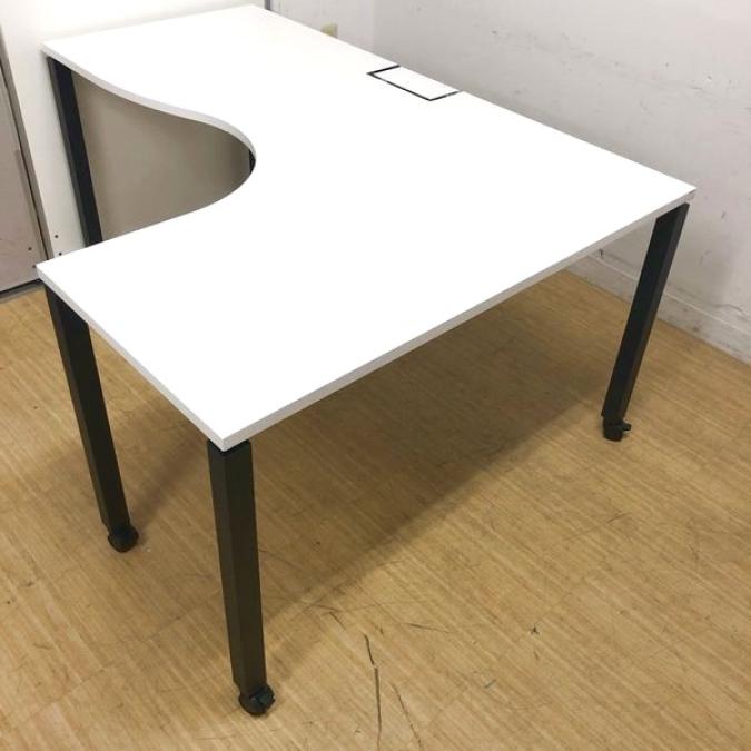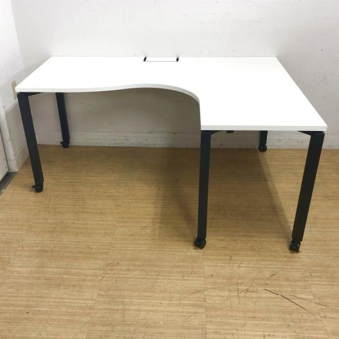 コクヨ ワークフィット サイドリターンテーブルR型(右ラウンド) ホワイト天板 キャスター脚 L字(L字型デスク)- 名古屋千種店