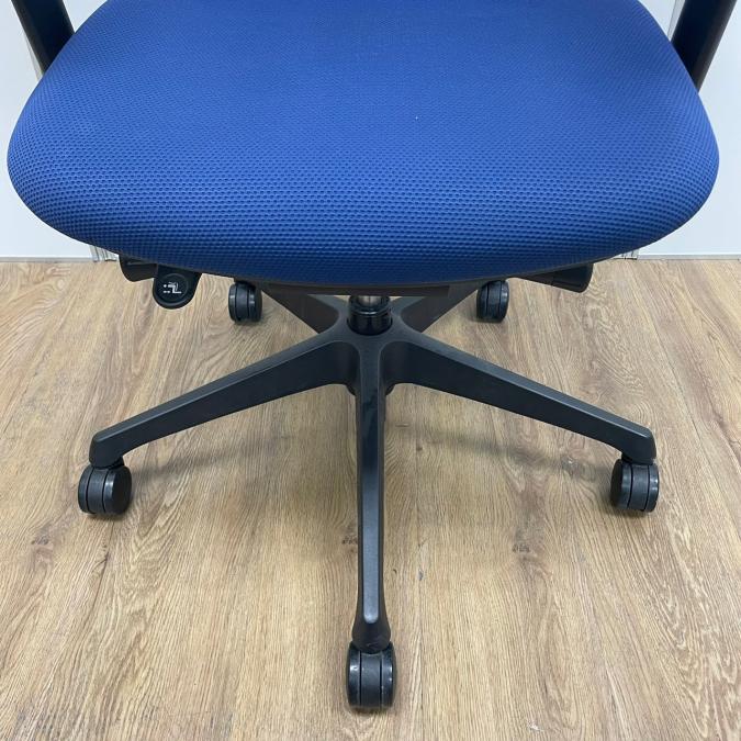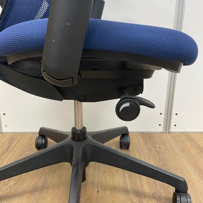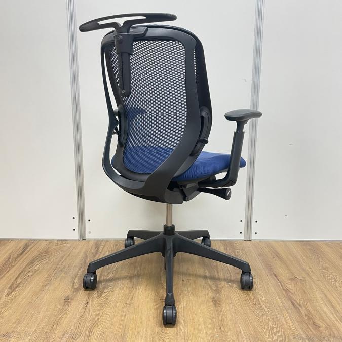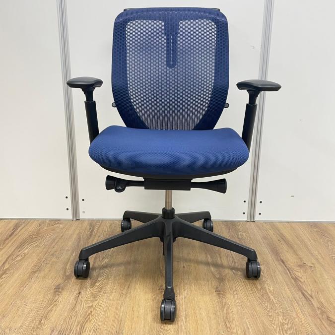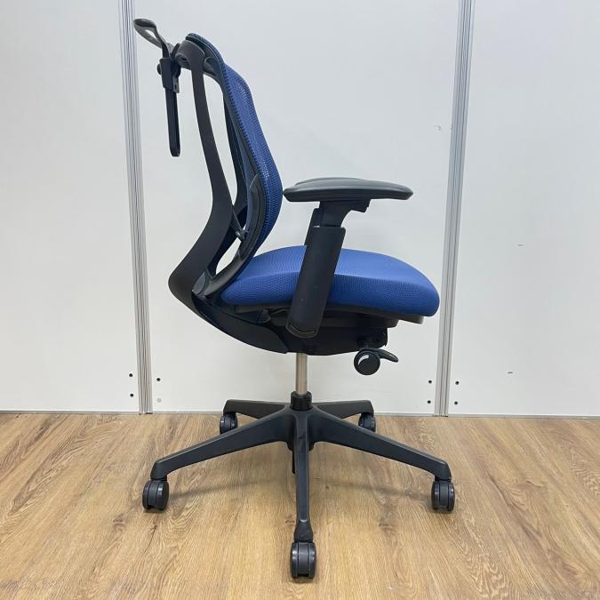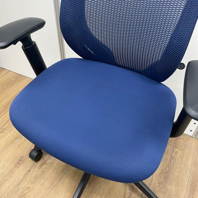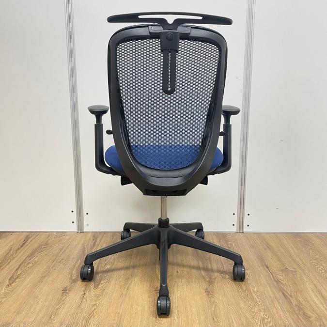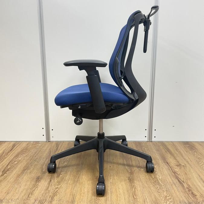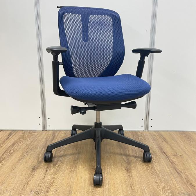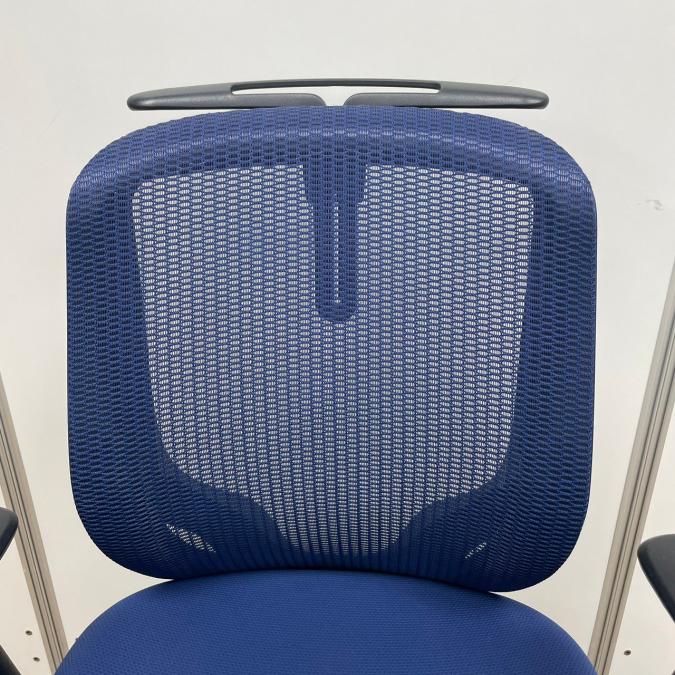 オカムラ製 シルフィーシリーズ ブルーカラー メッシュ仕様 前傾姿勢 コートハンガー付き アジャストアーム※可動肘 テレワーク・自宅用にもおすすめ 肘付きローバックチェア!!- 京都東寺店