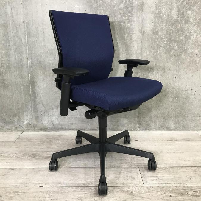【関西倉庫在庫】■オカムラ(okamura)製 エスクードチェア 肘付ローバックチェア ■ダークブルー×グレーシェル ■デザインアーム ■ランバーサポート 【弊社使用欄:A01029268】