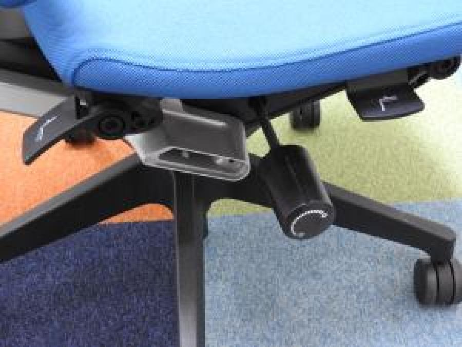 - ロッキングの後傾角度の範囲を、初期固定/10°/20°の3段階に調節可能。 簡単なレバー操作で、仕事の内容に合わせ手軽に調節できます。