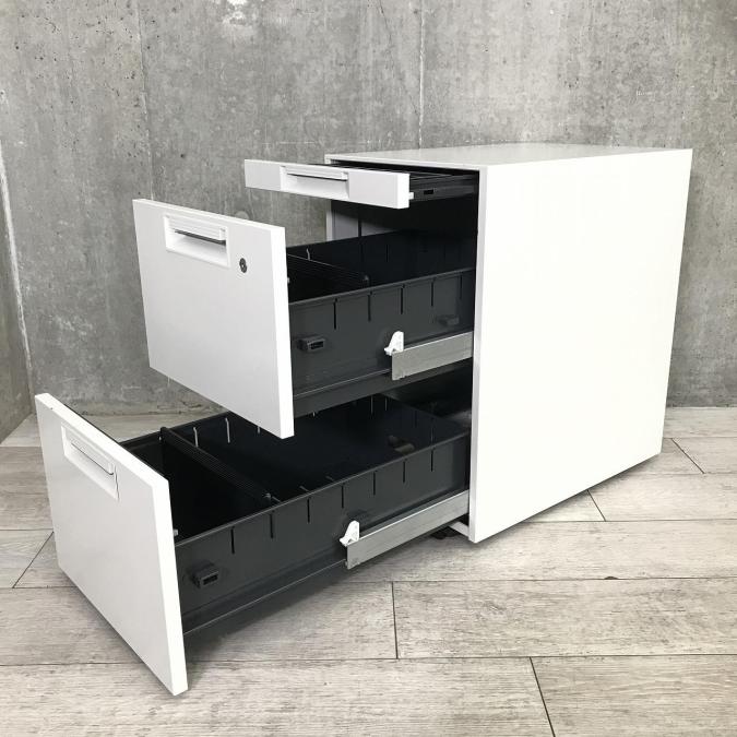 天板高720mmの単体デスクや、フリーアドレスデスクの下に設置可能なワゴンとなります。