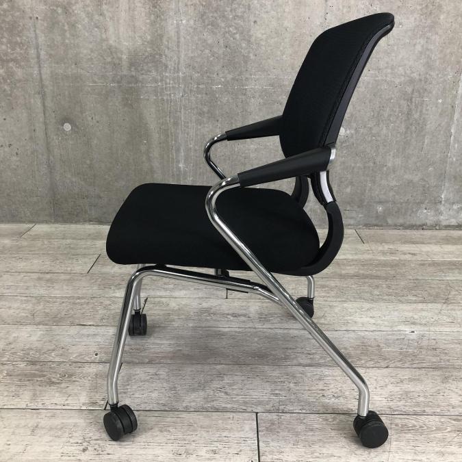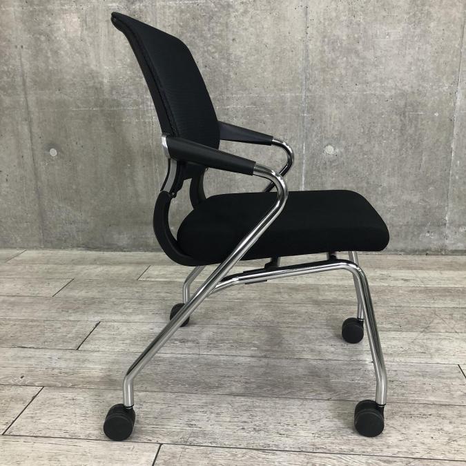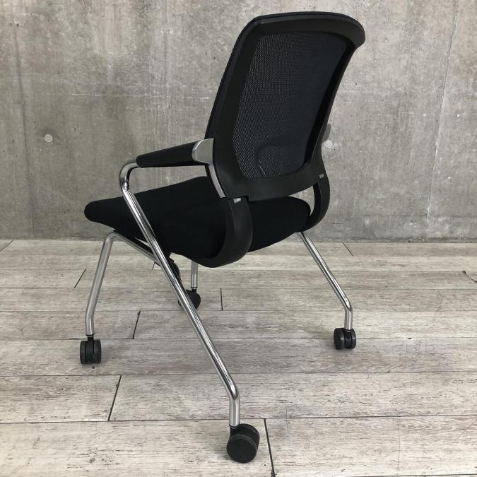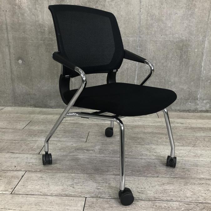 【背にフィットする快適メッシュ!】■コクヨ製 ネスティングチェア サテリテシリーズ ブラック ■リラックスできる肘付!- 川崎店