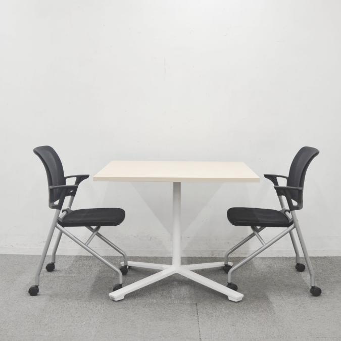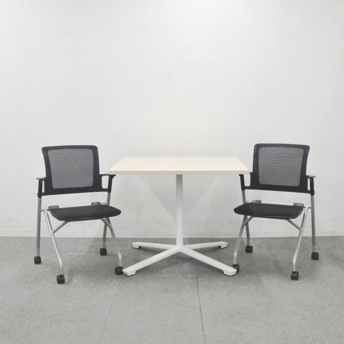 【限定2セット!】コクヨ ミーティングテーブル 四角テーブル ナチュラル天板 テーブル×チェアセット キャスター付き 折りたたみイス【テーブルもチェアもキャスター付きで移動もらくらく行えます!】Aランク- 大阪・堺店