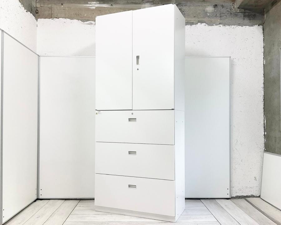 【在庫お探しいたします!/予約依頼商品】イトーキ製のハイキャビネット(両開き書庫+3段ラテラル書庫)【シンラインシリーズ/ホワイト色】 *良品を格安で!「オフィスバスターズ福岡南店」は、福岡を拠点として、全国へ中古オフィス用品・オフィス家具を提供しております