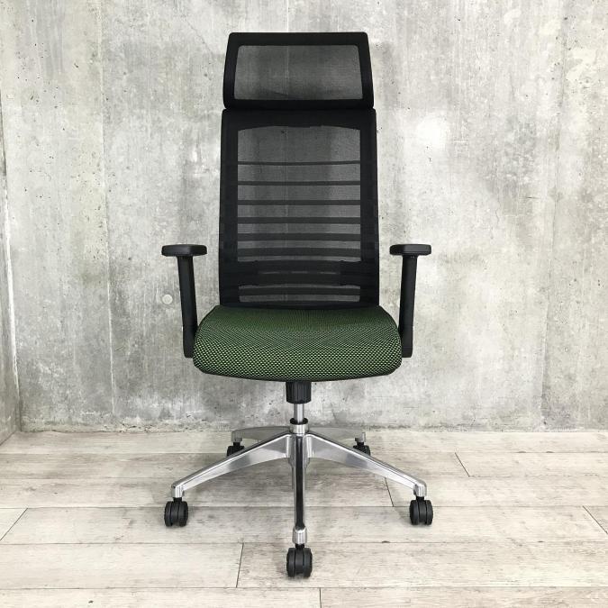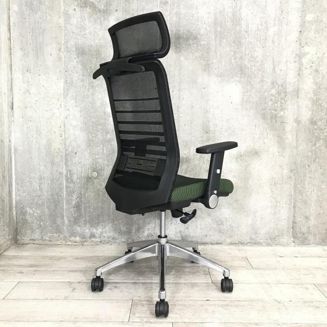 【珍しい!ヘッドレスト付きメッシュチェア!】 ■コイズミファニテック(koizumi/グリーン/可動肘付き- 池袋店