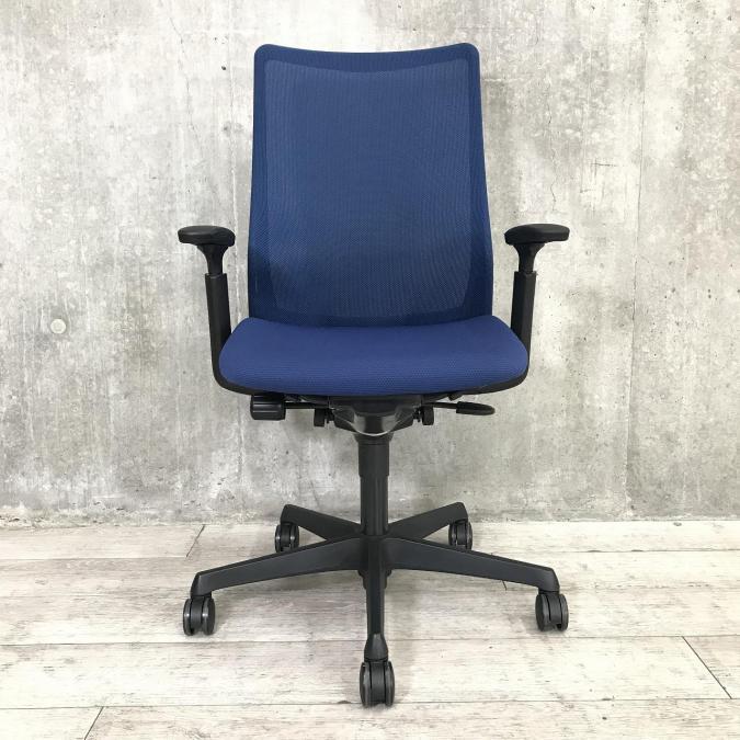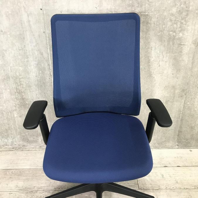 【訳アリ品】【リクライニング軋み】【1脚限り】オカムラ フルーエント メッシュハイバック アジャストアーム ミディアムブルー- 名古屋千種店