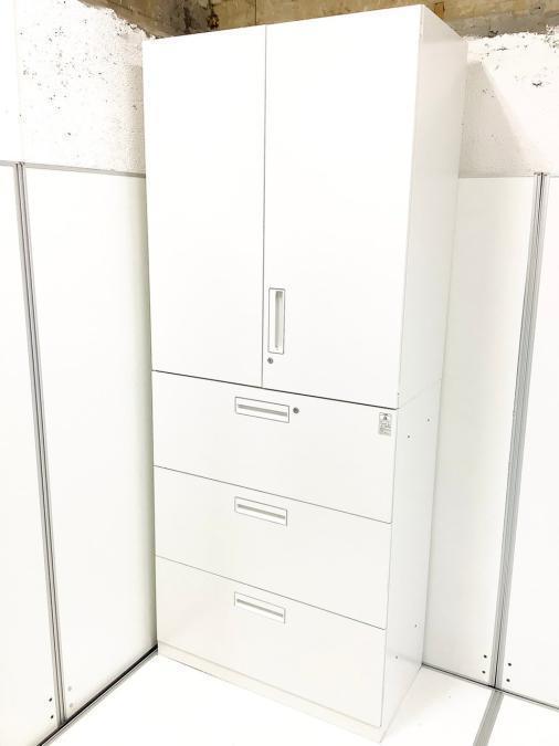 【収納量抜群の書庫セット!観音開き+引き出しタイプの人気の組み合わせ!】■コクヨ(KOKUYO)製 エディアシリーズ(EDIA) 両開き+3段ラテラル 書庫セット ハイキャビネット ■シリンダー錠 ■ホワイト