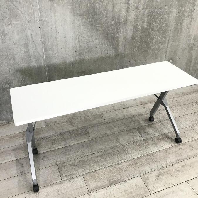 【在庫入替セール品】人気のスタックテーブル オカムラ フラプター ホワイト 幕板付き 折り畳める おすすめ!