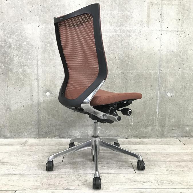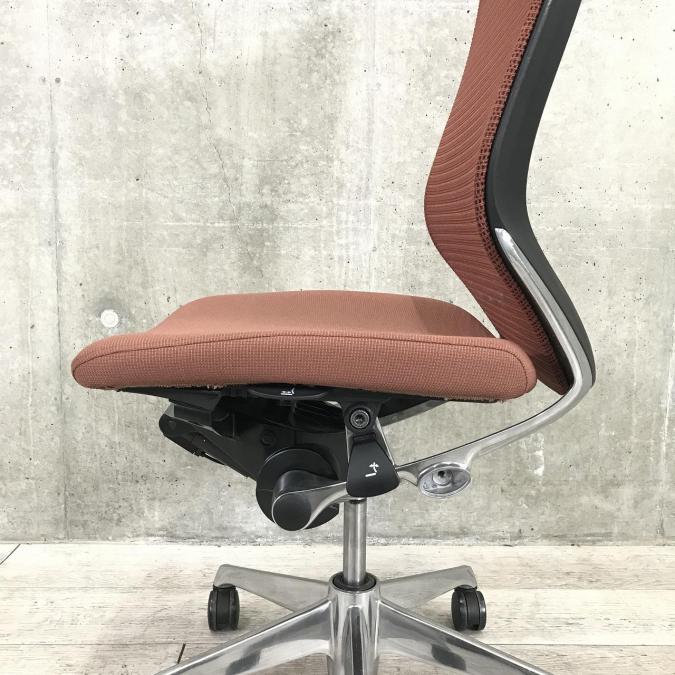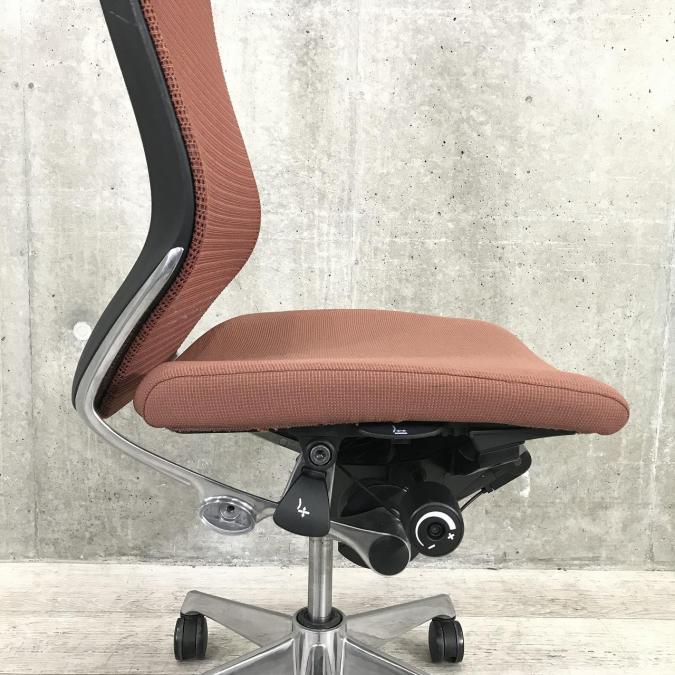 もちろん座り心地もコンテッサの直系ですから快適です。座面の素材はクッションとメッシュの2タイプあります。私、個人的には座面の中心部分でも外側でもテンションが変わらないクッション素材が、足を閉じても開いても快適なので推しです!"