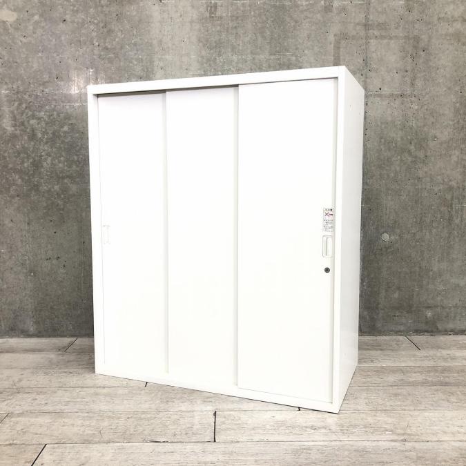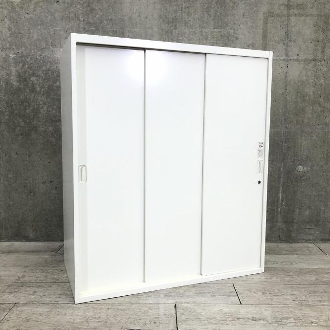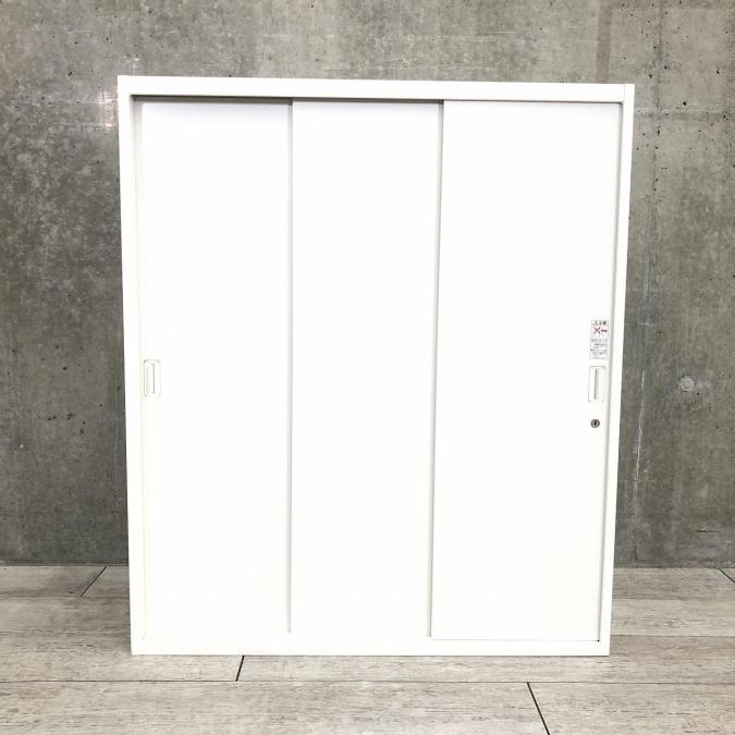 オカムラ製 人気レクトラインシリーズ ホワイト シリンダー W800xD450XH1050 3枚引戸 ※ベースなし 3枚引き違い書庫!!