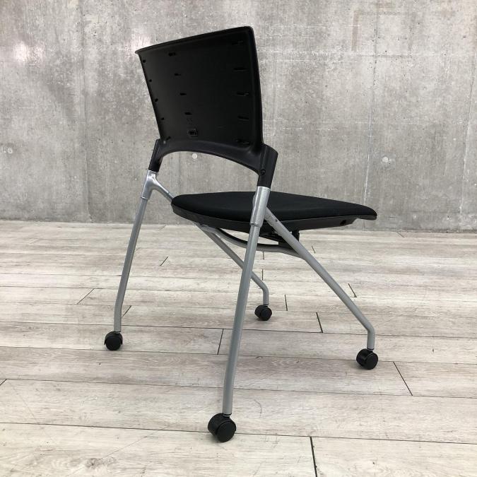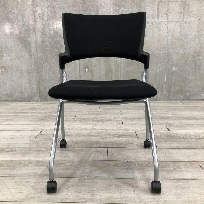 【関西倉庫在庫品】【平行に重ねて省スペース!使い勝手抜群のミーティングチェア!】■イトーキ マノスシリーズ ネスティングチェア 座ブラック 背ホワイト キャスター付【ITOKI Manos】【W】