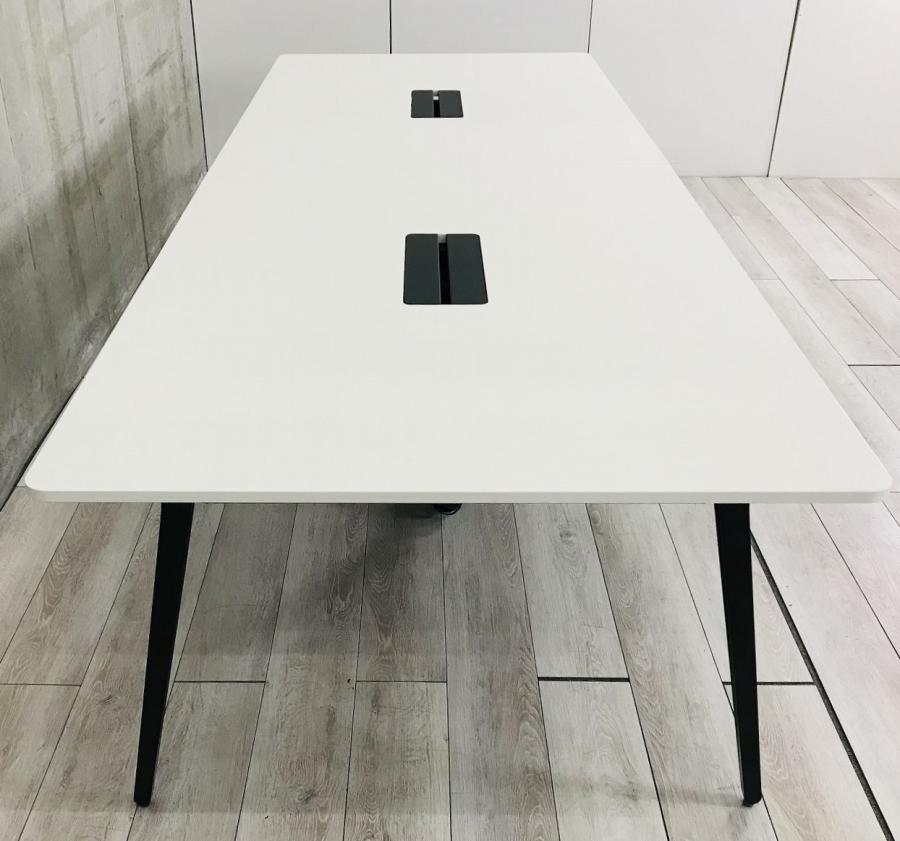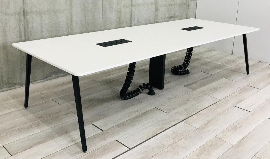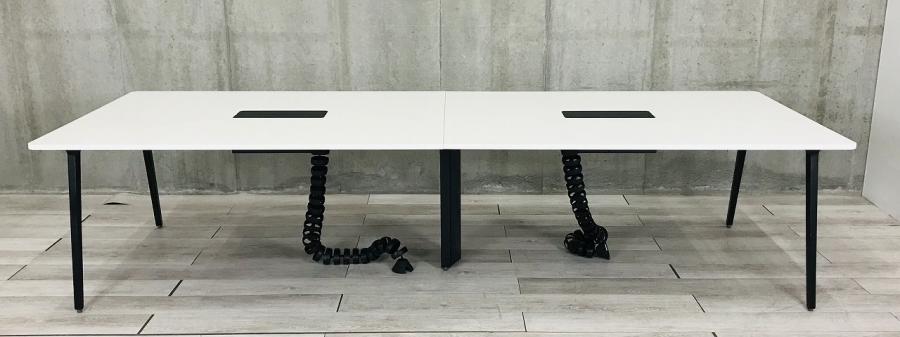 【横幅3200㎜の大型テーブル! 2枚分割の天板のため、大型テーブルの中では搬入がしやすい!】■ウチダ(UCHIDA)製 レムナ ミーティングテーブル ■ピュアホワイト天板×エルブラック脚 ■幅3200mm×奥行き1200 【フリーアドレス化にもオススメです!】- 足立・葛飾店